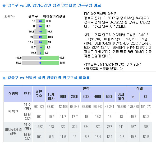 ÀÌ »ó±ÇÀÇ ÁÖ ¼Òºñ°èÃþÀº ¿ª½Ã ¿©¼ºµé·Î, ±× Áß¿¡¼µµ 30~40´ë ÁÖºÎÀÇ ºñÀ²ÀÌ ³ô°í, 20´ë¿©¼ºÀÌ ±× µÚ¸¦ ÀÕ°í Àִµ¥ ¿ÜºÎ¿¡¼ À¯ÀԵǴ °èÃþº¸´Ù ÀαٰÅÁֹεéÀÌ ÈξÀ ¸¹¾Ò´Ù. ÀÌÁ¡Àº À̰÷ÀÇ À¯µ¿Àα¸¸¦ º¸¸é ¾Ë ¼ö Àִµ¥ ÆòÀϰú ÁÖ¸»ÀÇ ±¸ºÐ¾øÀÌ ÁֺεéÀÇ À¯µ¿ÀÌ °¡Àå Ȱ¹ßÇÏ°Ô ³ªÅ¸³ª°í, Àú³áÀϺΠ½Ã°£´ë¿¡ 10´ë~20´ë¿©¼ºÀÇ ¸ð½ÀÀÌ ÀûÁö¾Ê°Ô ´«¿¡ ¶è´Ù. ÇÏÁö¸¸ ¸íµ¿, Á¾·Î, ´ëÇзÎ, ¼º½Å¿©´ëµî ÁöÇÏö·Î20ºÐÀ̳»¿¡ µµÂø ÇÒ ¼ö ÀÖ´Â ´ëÇü»ó±ÇÀÌ ³× °÷À̳ª µÇ±â ¶§¹®¿¡ ¹Ì¾Æ»ï°Å¸®»ó±ÇÀ¸·Î ¸ðÀÌ´Â ÀþÀºÀ̵éÀÇ ºñÀ²ÀÌ ±×¸® ³ôÁö ¾Ê´Ù´Â Á¡Àº ¹Ýµå½Ã ¿°µÎ¿¡ µÎ¾î¾ß ÇÑ´Ù.