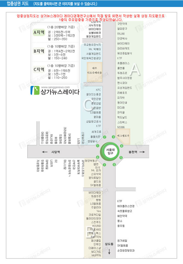 ¿ì¼± ¼¿ï´ëÀÔ±¸¿ª¿¡¼ °¡Àå À¯µ¿Àα¸°¡ ¸¹Àº 3¹øÃⱸ¿¡¼ °ü¾Ç±¸Ã»±îÁöÀÇ ´ë·Îº¯ (¸ÊÁöµµ»ó AÁö¿ª)Àº ¼¿ï´ë, °ü¾Ç»ê¹æÇâÀ¸·Î Çü¼ºµÇ¾î ÀÖ¾î¼ ´ëÇлýµéÀÇ ¸ð½Àµµ ¸¹ÀÌ º¸ÀÌÁö¸¸, ¿ÀÈ÷·Á ÁÖ ¼Òºñ°èÃþÀº ½Å¸²9µ¿, ½Å¸²2µ¿¿¡ °ÅÁÖÇÏ´Â ÀþÀºÀ̵éÀÌ´Ù.